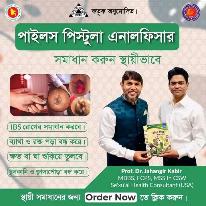 কোন প্রকার অপারেশন ছাড়া। পাইলস, অর্শ্ব, গেজ, এনাল ফিশার, ফিস্টুলা থেকে একদমই স্থায়ী সমাধান নিন। সম্পূর্ণ ন্যাচারাল পদ্ধতিতে